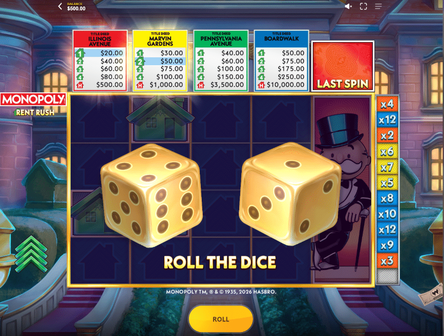 Collect your properties. Roll the dice. Collect your winnings.