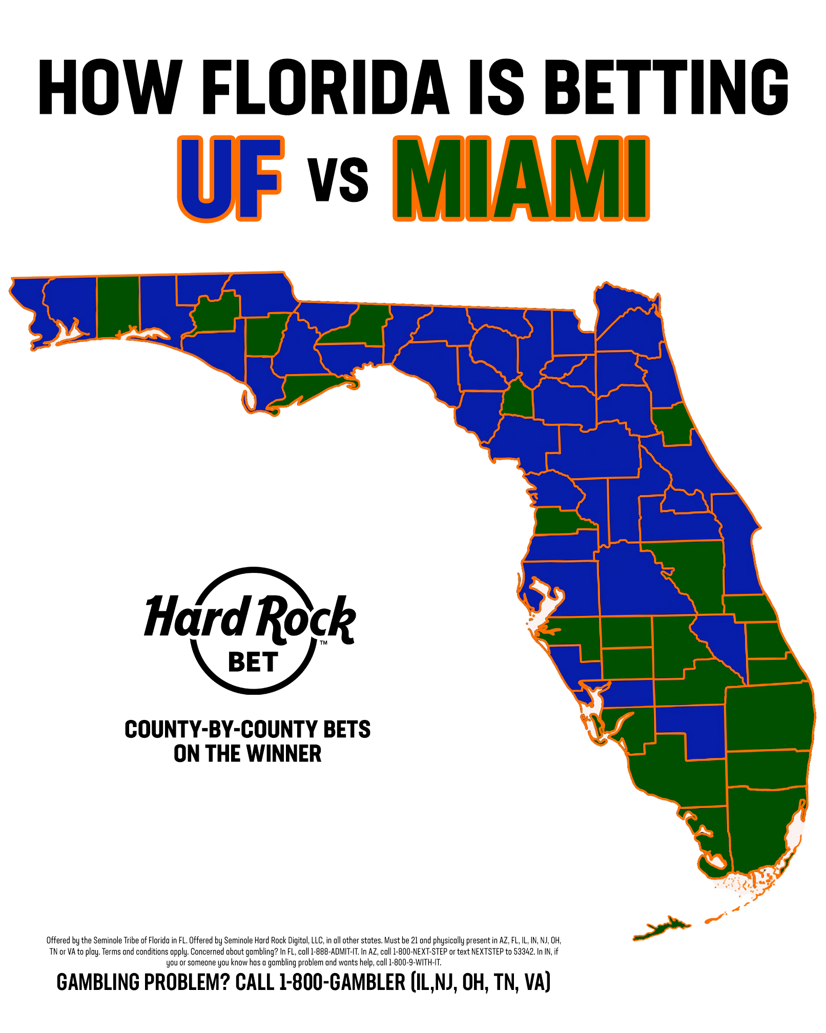 - However, the confidence drops as you head along the I-95 corridor. 72.5% of bettors in Broward are taking Miami, but that number falls to 59.7% in Palm Beach County, 54.1% in Martin County, before it flips to Gator Country in Brevard County.